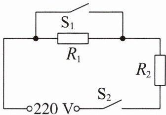 9. 如图所示,某家用电热水壶有高温和低温两挡,已知两定值电阻的阻值$ R_{1} $与$ R_{2} $相等,电热水壶在低温挡正常工作时的功率为 484\ W ,则$ R_{2} $为