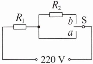 【典型例题5】(2024·江苏苏州中考)某电饭锅的电路如图所示,发热盘内有阻值分别为 $ R_{1} $ 和 $ R_{2} $ 的发热电阻和分压电阻,S是温控开关。当S接a时,电饭锅处于高温挡,通过的电流为4 A;当温度达到一定值时,开关S自动切换到b,电饭锅处于保温挡,通过的电流为0.25 A。