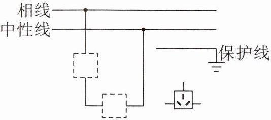 (2)由表格数据可知,此人身体潮湿时,手和脚之间的电阻$R_{人}=8.8× 10^{3}\ \Omega$,则手接触相线时通过人体的电流$I_{人}=\frac{U}{R_{人}}=\frac{220\ V}{8.8× 10^{3}\ \Omega}=0.025\ A$,通过保险丝的电流$I=I_{R}+I_{人}=5\ A+0.025\ A=5.025\ A$,保险丝的额定电流为10A,通过保险丝的电流小于保险丝的额定电流,所以保险丝不会断。