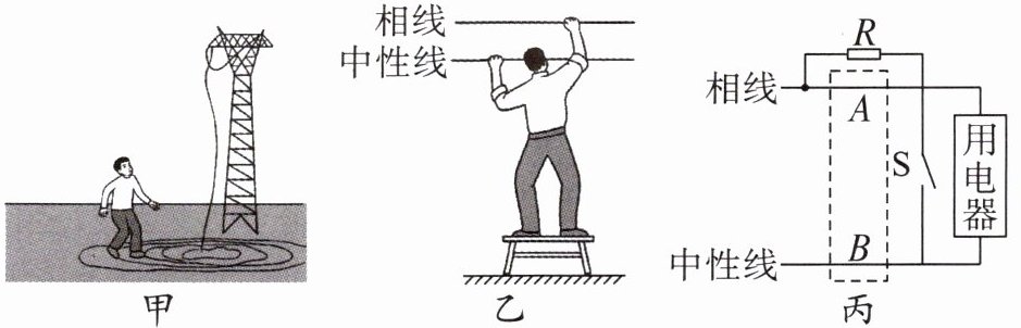 触电。如图乙所示,站在绝缘物上的人一手接触相线,另一手接触中性线,这属于双线触电