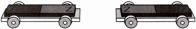 2. 如图所示,在两个靠得较近的小车上分别放一块磁体,松手后,两个小车将彼此