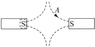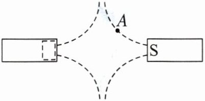 4. 请在图中虚线框内标出“S”或“N”极,以及磁感线在A点的方向。