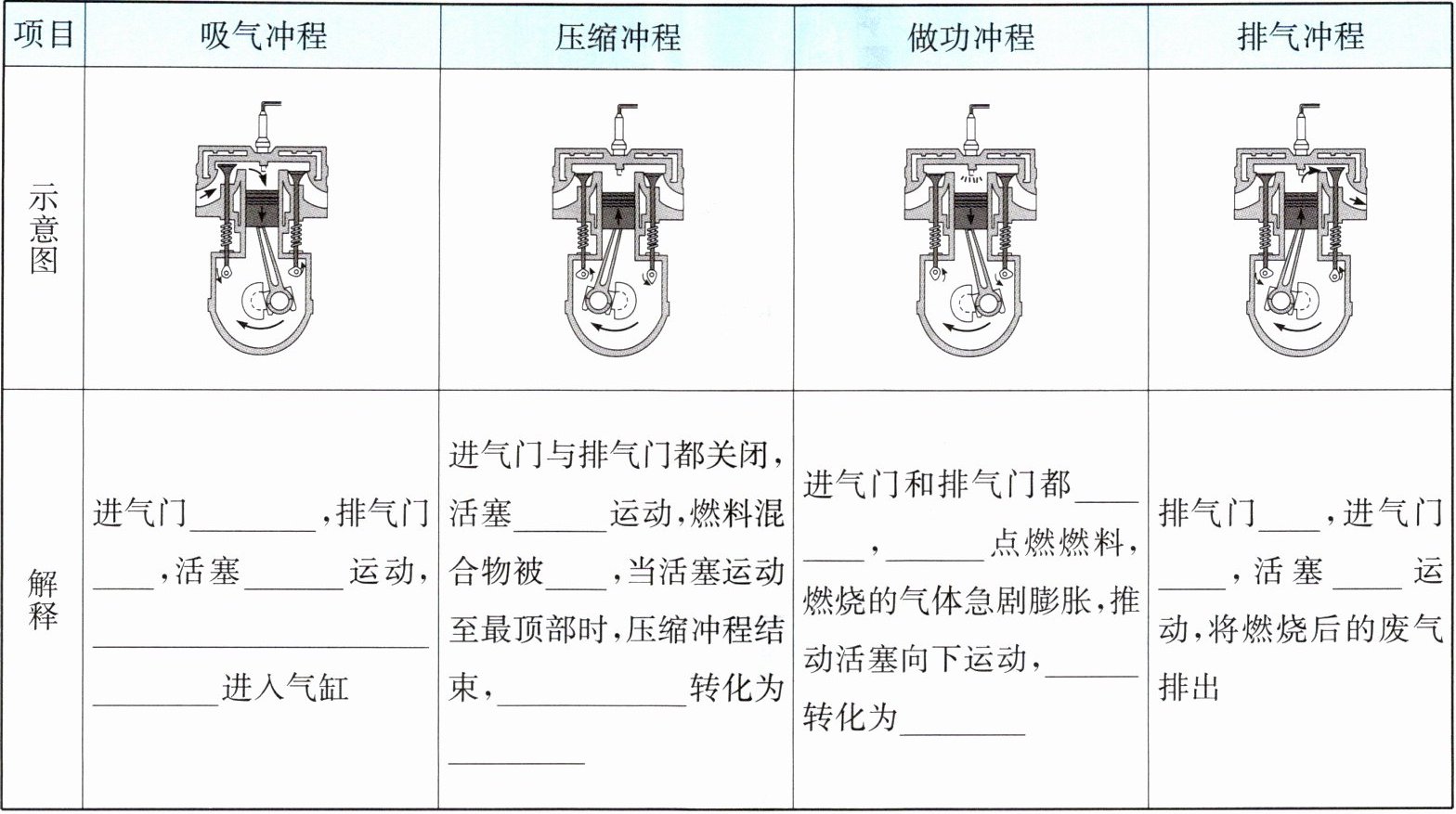 |项目|吸气冲程|压缩冲程|做功冲程|排气冲程|