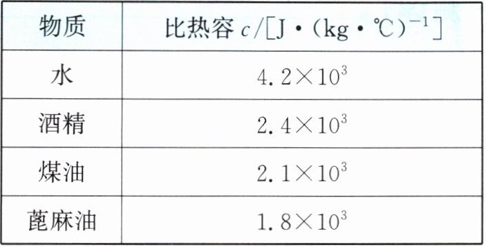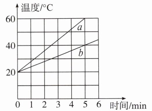 5. (2024·山东烟台中考)在探究物质的吸热情况与哪些因素有关的实验中,用质量是0.3 kg的水和表中等质量的另一种物质进行对比,作出的图像如图所示。实验过程中,水和另一种物质在相同时间内吸收的热量相等,分析图像可以得出图线______(选填“$a$”或“$b$”)对应的物质为水,另一种物质为______,这种物质在0~5 min内吸收的热量为______ J。