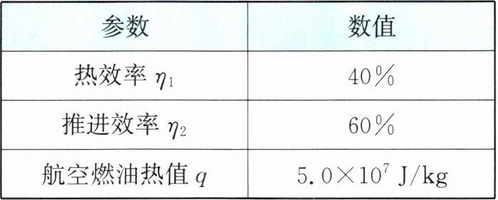 |航空燃油热值q|$5.0×10^7J/kg$|