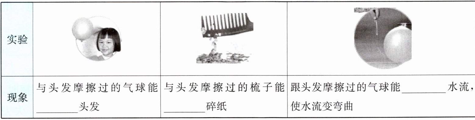 水流,使水流变弯曲|结论:摩擦过的物体能够