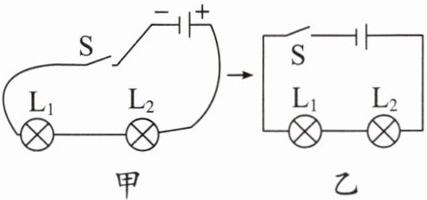 思路导引 用规定的符号替换实物图中的元器件,如图甲所示,然后再整理成规范的电路图,如图乙所示。