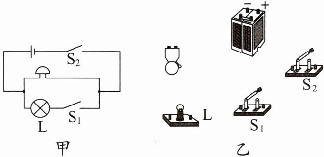 4. 根据图甲所示的电路图连接图乙中的实物元器件。