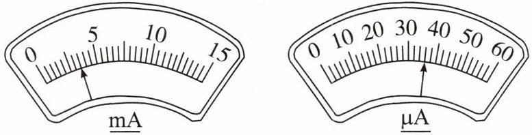 8. 如图所示的两个电流表刻度盘也许是你没有见过的,请试着读出它们的示数。