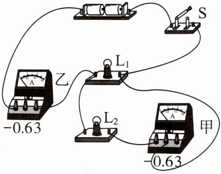 D. 电流表乙测通过灯泡$L_1和L_2$的总电流