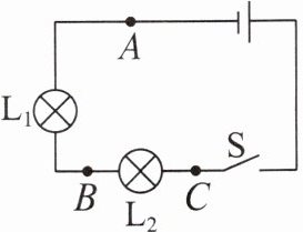 。(3)闭合开关 $ S $ 后,发现 $ L_1 $ 发光,$ L_2 $ 不发光,发生此现象的原因可能是 $ L_2 $