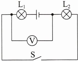 5. 如图所示的电路中,闭合开关S后,电压表测量的是(