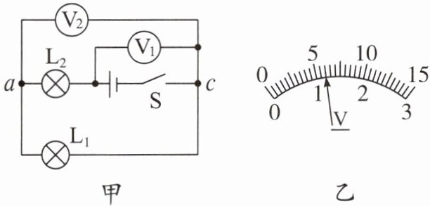 【典型例题 2】如图甲所示的电路中,闭合开关后,两个电压表的指针偏转均如图乙所示,则灯 $L_1$ 和 $L_2$ 两端的电压分别为( )