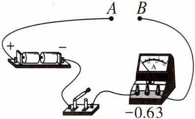 电流表 将不同软硬程度的铅笔芯分别接入A、B两端,闭合开关 记录接入不同铅笔芯时电流表的示数$I_{1}$、$I_{2}$、$I_{3}$、$I_{4}$ $I_{1}≠I_{2}≠I_{3}≠I_{4}$