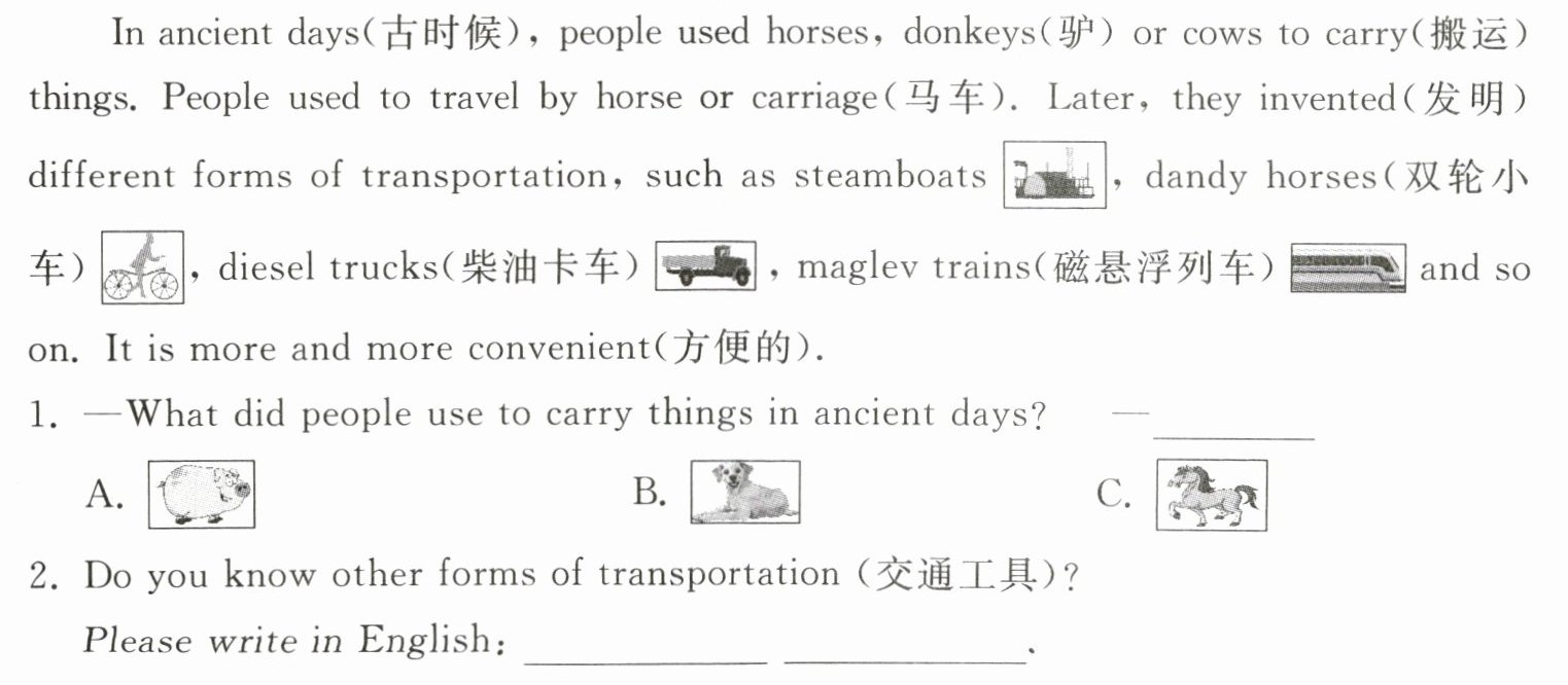 1. C 2. bikes, cars(答案不唯一,合理即可)
