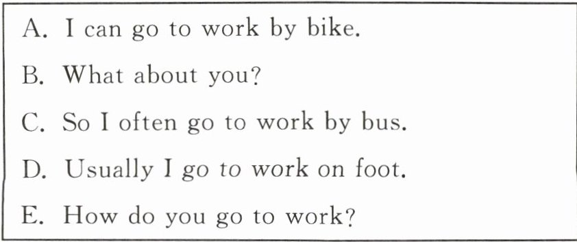 1. E C B D A 2. near; by bus; has; bike; by bike
