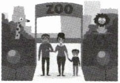 一、根据句意及首字母提示补全单词,并选出相符的图片,将序号写在括号里。