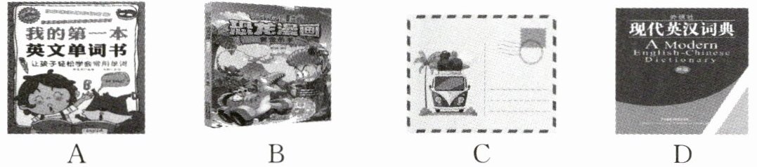 1. postcard; C 2. word book; A 3. dictionary; D 4. comic book; B