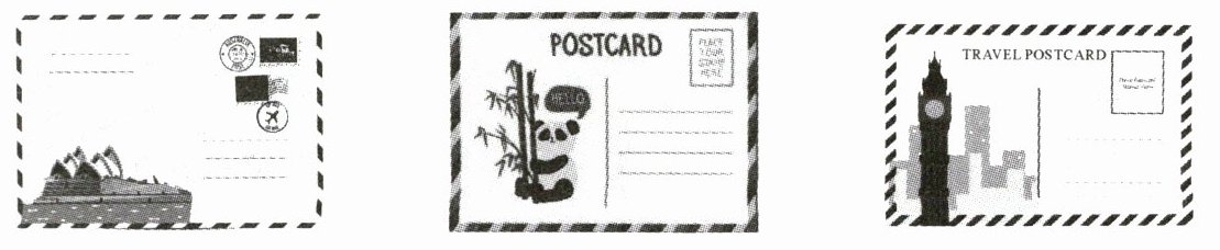 从美丽的风景到漂亮的动物,从经典雕塑到标志性建筑,从名胜古迹到文化活动……明信片的内容可谓丰富多彩、五花八门。对游客而言,购买当地明信片就像购买当地纪念品,总是充满了惊喜和乐趣,同时也能向远方的亲友寄出一份问候。请欣赏以下明信片,并尝试写写它们分别来自哪个国家。