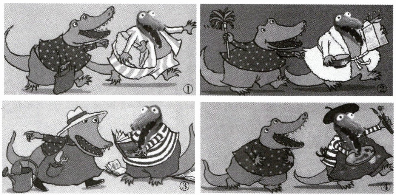 (3)C: I'm going to water the plants. Will you give me a hand, Alligator? A: It's too easy, Crocodile. I'll have breakfast first.