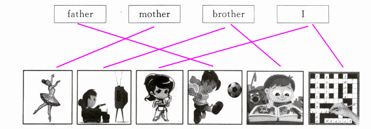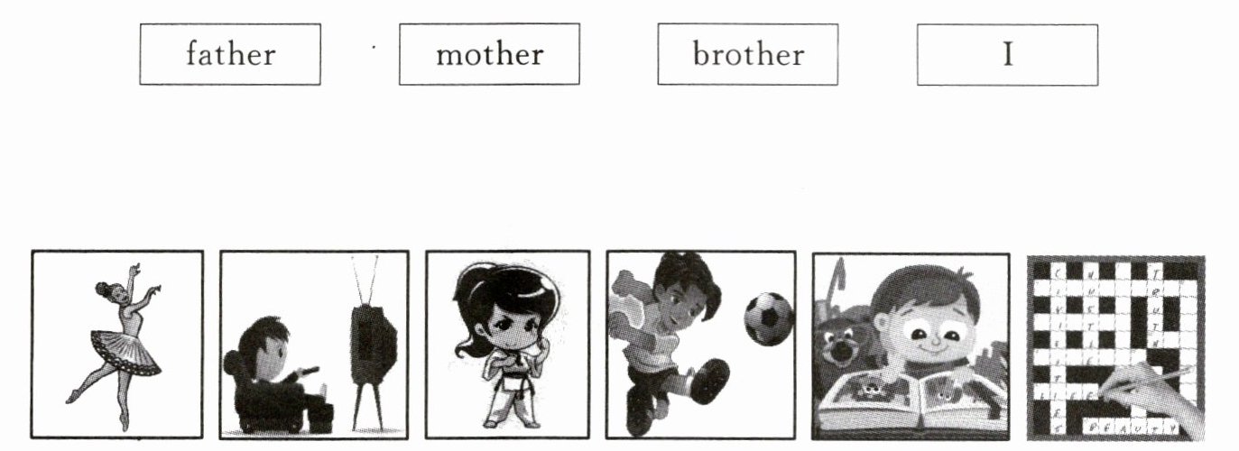 There are four people in my family. We have different hobbies. My father likes playing football. He is busy. So he often plays football on Sundays. My mother likes dancing. She says it can help her keep healthy. She usually dances with her friends in the evening. My brother is five years old. He likes reading comic books. He also likes watching TV. But my parents tell him not to watch TV too much. It's bad for his eyes. Do you know what my hobbies are? I like doing kung fu and doing word puzzles. I love my family.