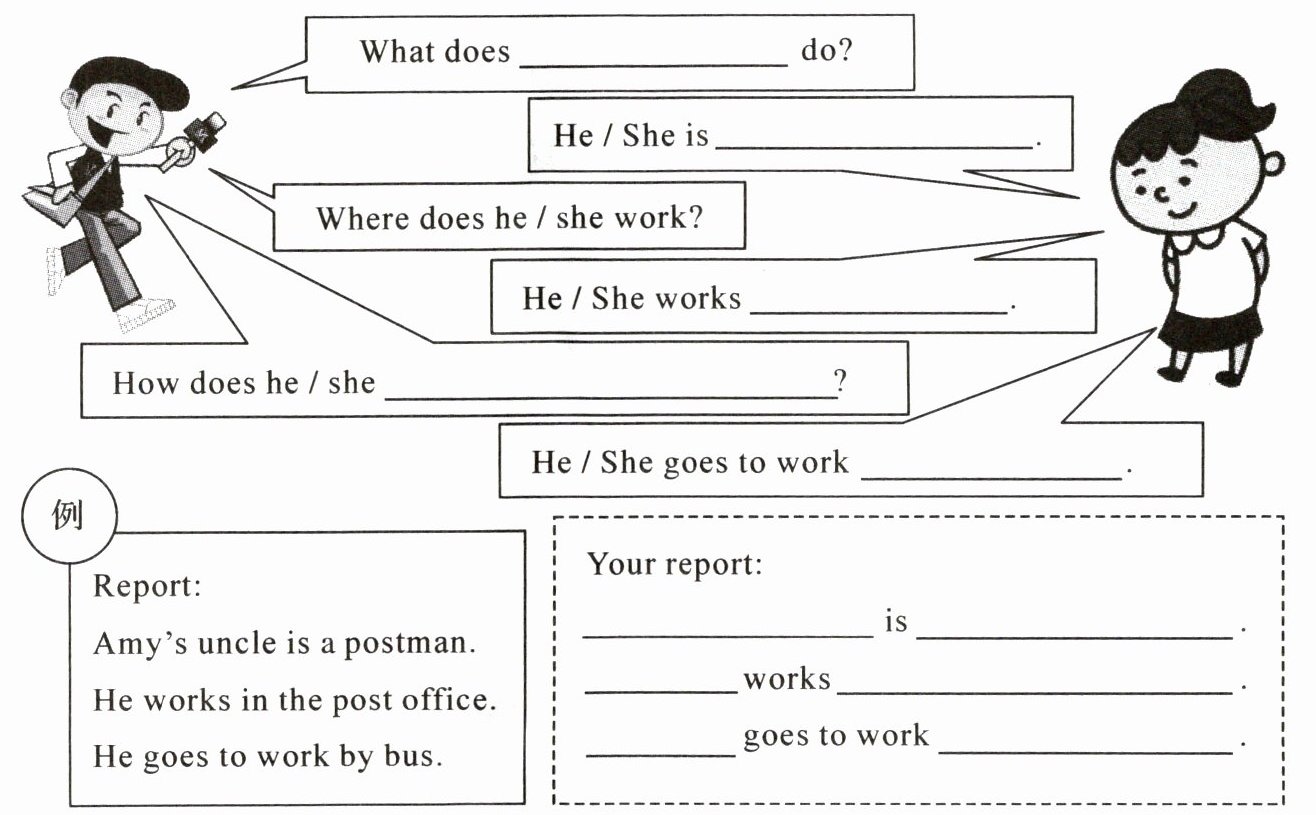按对话提示,在班级里进行关于 career 的采访,并模仿例句作报告。