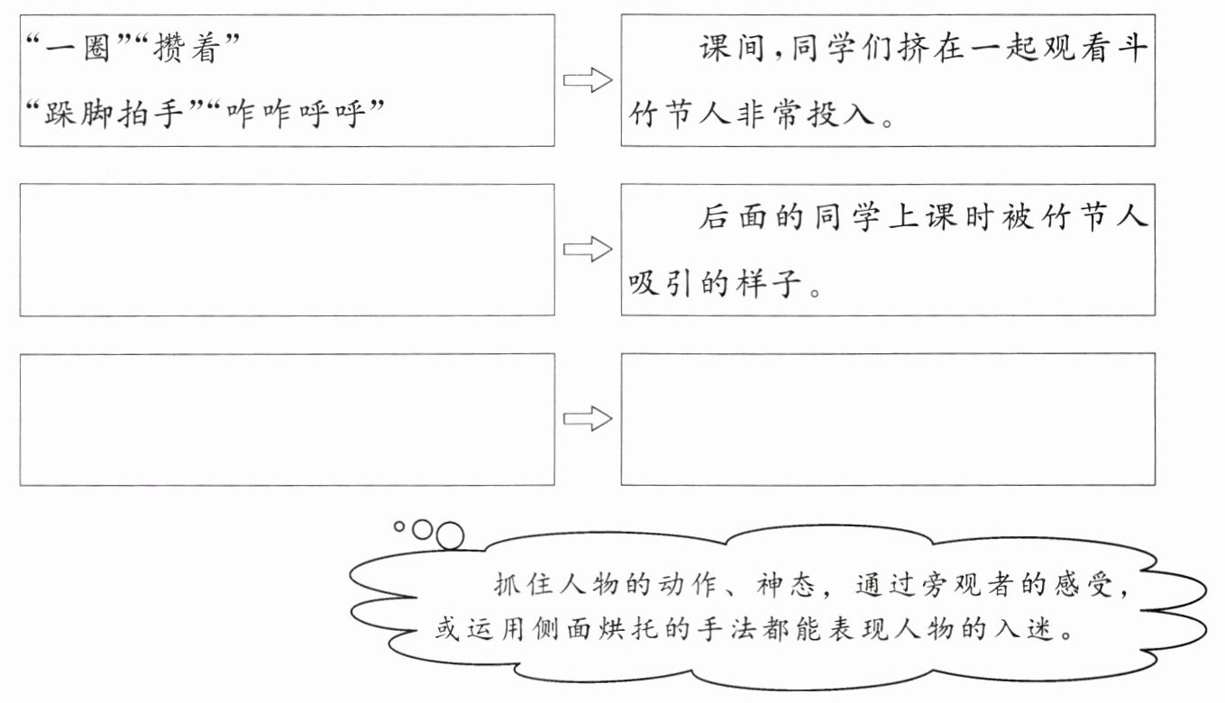 1. 根据本单元“词句段运用”第1题中的语段,照样子填写。