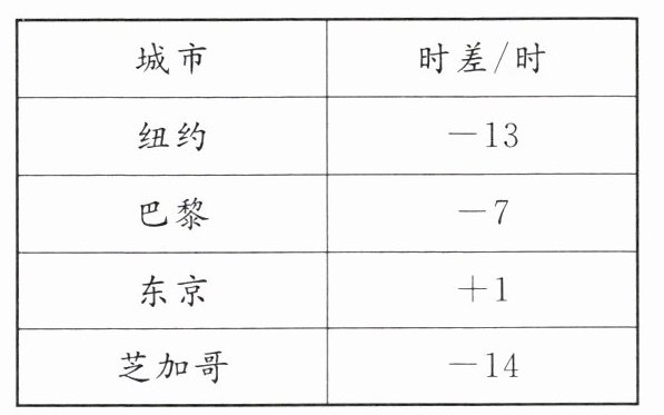 11. 下表列出了国外几个城市与北京的时差(带正号的表示同一时刻比北京时间早的时数),如北京时间上午 10:00 时,则东京时间是 10+1= 11(时)。