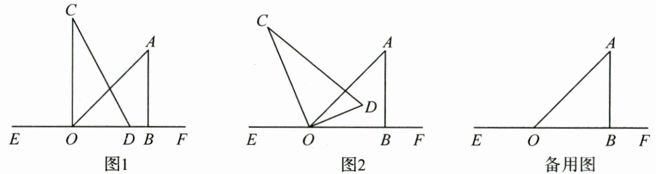 26.(6分)将一副三角尺按照如图1所示的位置放置在直线EF上,现将含30°角的三角尺OCD绕点O逆时针旋转180°,在这个过程中,