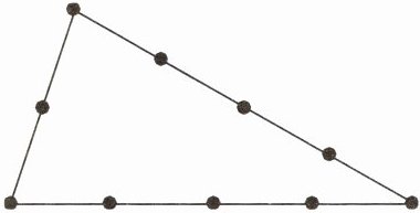 将原三角形顶部的3根火柴棒中的2根分别移到原三角形底边的左侧和右侧,形成两个各有5根火柴棒的小三角形。