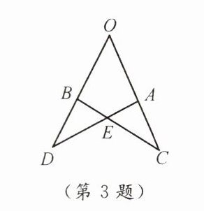 3. 如图,OA= OB,OC= OD,∠O= 50°,∠D= 35°,则∠C等于(