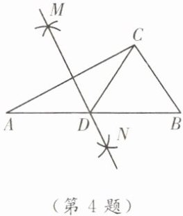4. 如图,在△ABC中,分别以点A和点C为圆心,大于$\frac{1}{2}$AC的长为半径作弧,两弧相交于M,N两点,作直线MN,直线MN与AB相交于点D,连结CD。若BD= 5,CD= 4,则AB的长为(