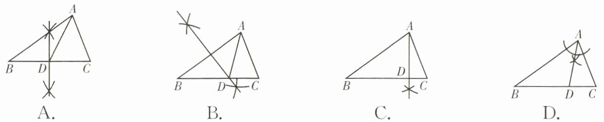 1. 用直尺和圆规作△ABC的中线AD,作图正确的是(