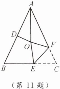 11. 如图,在△ABC中,AB= AC,∠BAC= 50°,∠BAC的平分线与AB的垂直平分线交于点O,将∠C沿EF(点E在BC上,点F在AC上)折叠,点C与点O恰好重合,则∠CFE=