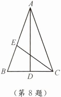 8. 如图,AD,CE分别是△ABC的中线和角平分线。若AB= AC,∠CAD= 20°,则∠ACE的度数为(