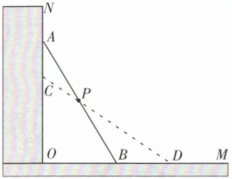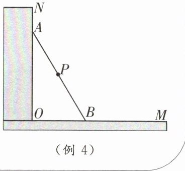 【例4】如图所示,一根长$2.5米的木棍AB斜靠在与地面OM垂直的墙ON$上,此时$OB的距离为0.7$米,设木棍的中点为$P$。若木棍$A$端沿墙下滑,且$B$端沿地面向右滑行。