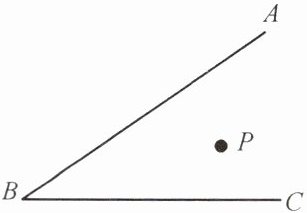 15. 如图所示,∠ABC内有一点P,在BA,BC边上各取一点$P_1,P_2,$使$△PP_1P_2$的周长最小。