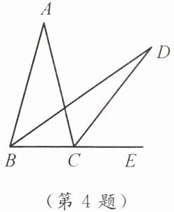 4. 如图,在$\triangle ABC$中,$AB= AC$,$\angle A= 30^\circ$,E 为 BC 延长线上一点,$\angle ABC与\angle ACE$的平分线相交于点 D,则$\angle D$的度数为(