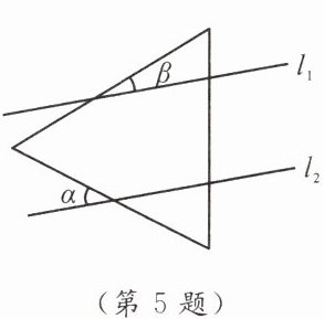 5. 已知直线$l_{1}// l_{2}$,将等边三角形如图放置,若$\angle \alpha =40^\circ$,则$\angle \beta=$