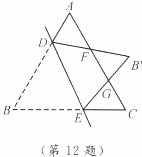 12. 如图,在等边三角形 ABC 中,点 D,E 分别在边 AB,BC 上,把$\triangle BDE$沿直线 DE 翻折,使点 B 落在点$B'$处,$DB'$,$EB'$分别交 AC 于点 F,G。若$\angle ADF= 70^\circ$,则$\angle BED= $