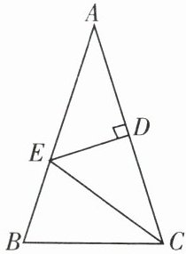 13. 如图,在$\triangle ABC$中,$AB= AC$,$\angle A= 36^\circ$,AC 的垂直平分线交 AB 于点 E,D 为垂足,连结 EC,求$\angle ECB$的度数。