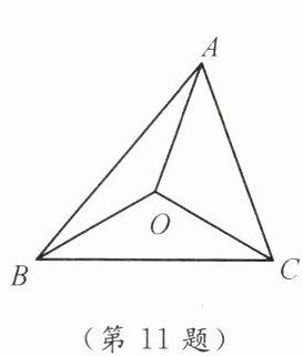 11. 如图,O 为$\triangle ABC$内一点,且$OA= OB= OC$,$\angle ABO= 20^\circ$,$\angle BCO= 30^\circ$,则$\angle CAO= $