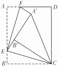 11. 如图,小明在做手工时,把一张长AB= 15 cm,宽BC= 12 cm的纸片两直角都向内折叠,折痕分别是EF,EC,折叠后点A落在点A'处,点B落在点B'处,且点B'在EA'上。如果BE= 3 cm,请求出A'C的长。