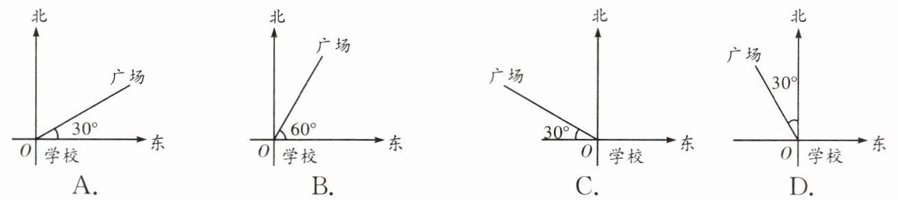 1. 以学校为观测点,广场在北偏西$60^\circ$的方向上,下图中正确的是(