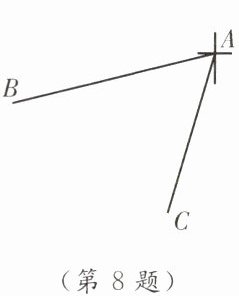 8. 北京西站和北京南站是北京的两个铁路客运中心,如图,A,B,C分别表示天安门、北京西站、北京南站,经测量,北京西站在天安门的南偏西$77^\circ$方向,北京南站在天安门的南偏西$18^\circ$方向,则$\angle BAC$的角度为(