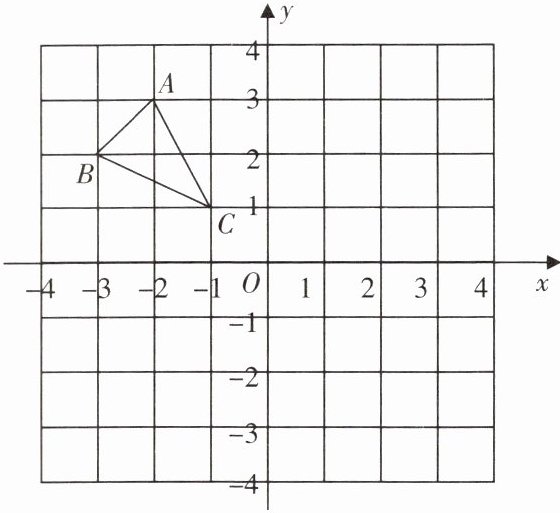 在坐标系中描出点$A_1(2,3)$,$B_1(3,2)$,$C_1(1,1)$,依次连接,得到$\triangle A_1B_1C_1$。
