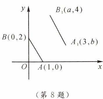 8. 如图,点A,B的坐标为(1,0),(0,2),若将线段AB平移至$A_1B_1,$则a-b的值为