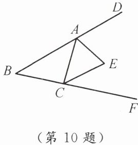 10. 如图,在△ABC中,∠B= 42°,△ABC的外角∠DAC和∠ACF的平分线交于点E,则∠AEC=