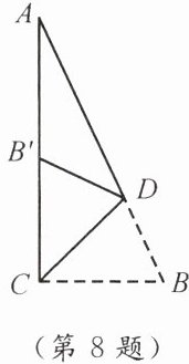 8. 如图,在直角三角形ACB中,∠ACB= 90°,∠A= 25°,D是AB上一点。将直角三角形ABC沿CD折叠,使点B落在AC边上的点B'处,则∠ADB'等于(