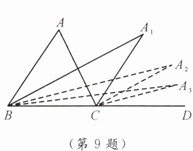 9. 如图$,BA_1$和$CA_1$分别为△ABC的内角平分线和外角平分线$,BA_2$是$∠A_1BD$的平分线$,CA_2$是$∠A_1CD$的平分线$,BA_3$是$∠A_2BD$的平分线$,CA_3$是$∠A_2CD$的平分线……若$∠A_1= α,$则$∠A_2₀_1_5$的度数为(